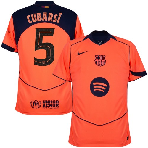 Barcelona tredjedrakt 2025/26 med Cubarsí 5 – offisiell alternativdrakt for klubbens unge forsvarstalent.