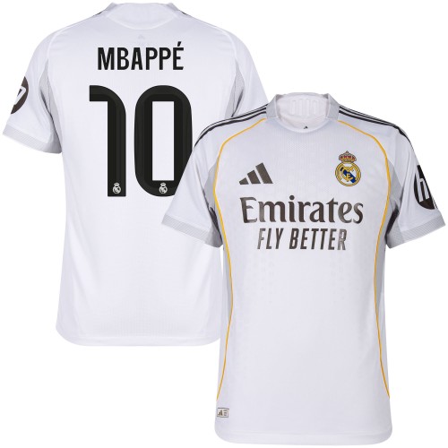 Real Madrid hjemmedrakt 2025/26 med Mbappé 10 – ikonisk hvit drakt for klubbens nye superstjerne.